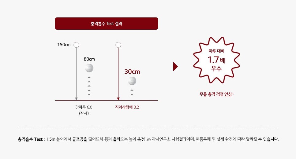 지아사랑애 3.2는 마루대비 약 1.7배 충격흡수가 뛰어납니다.