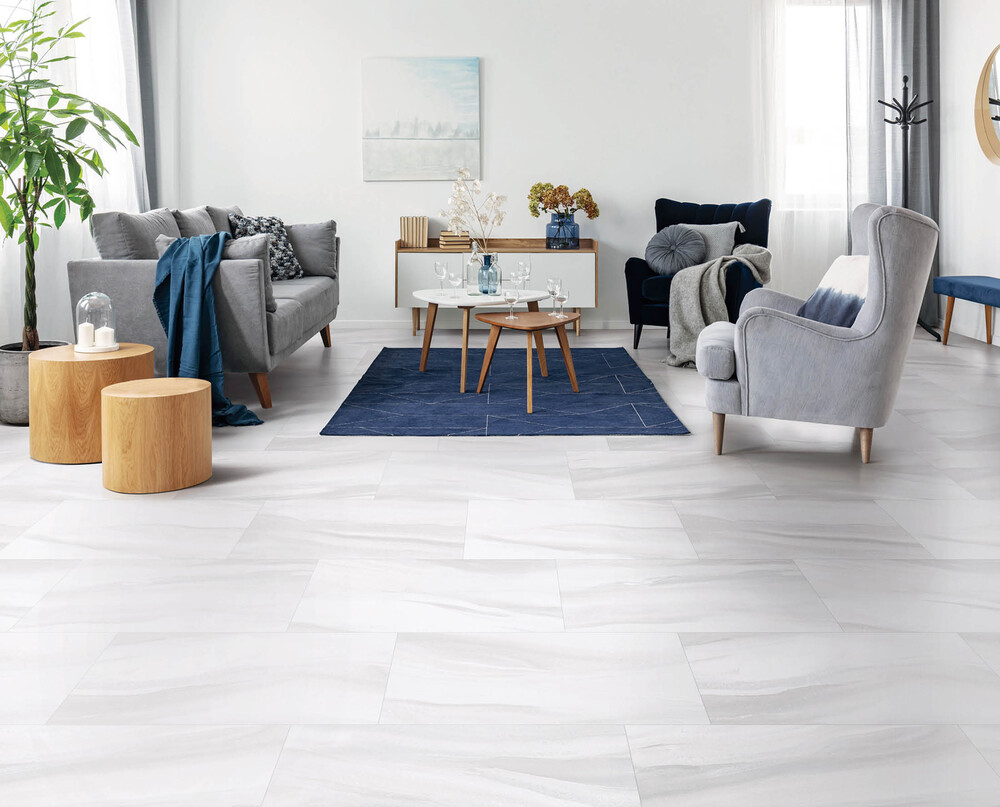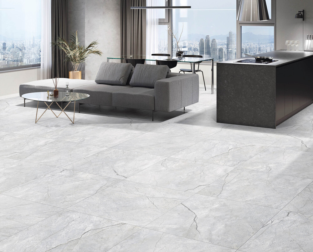 은은한 느낌으로 고급스러운 마블이 살아있는 시트. 타일의 크기를 늘려 보다 시원하고 넓은 공간을 연출하여 줍니다.