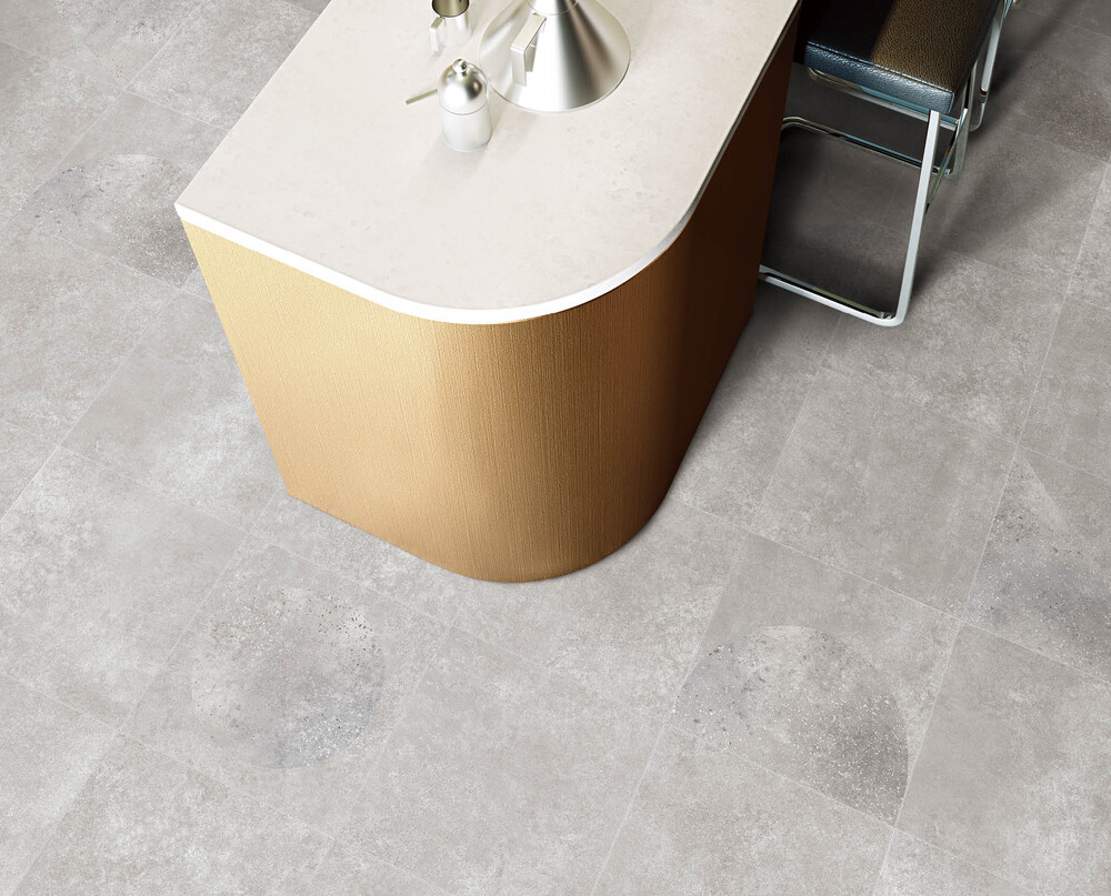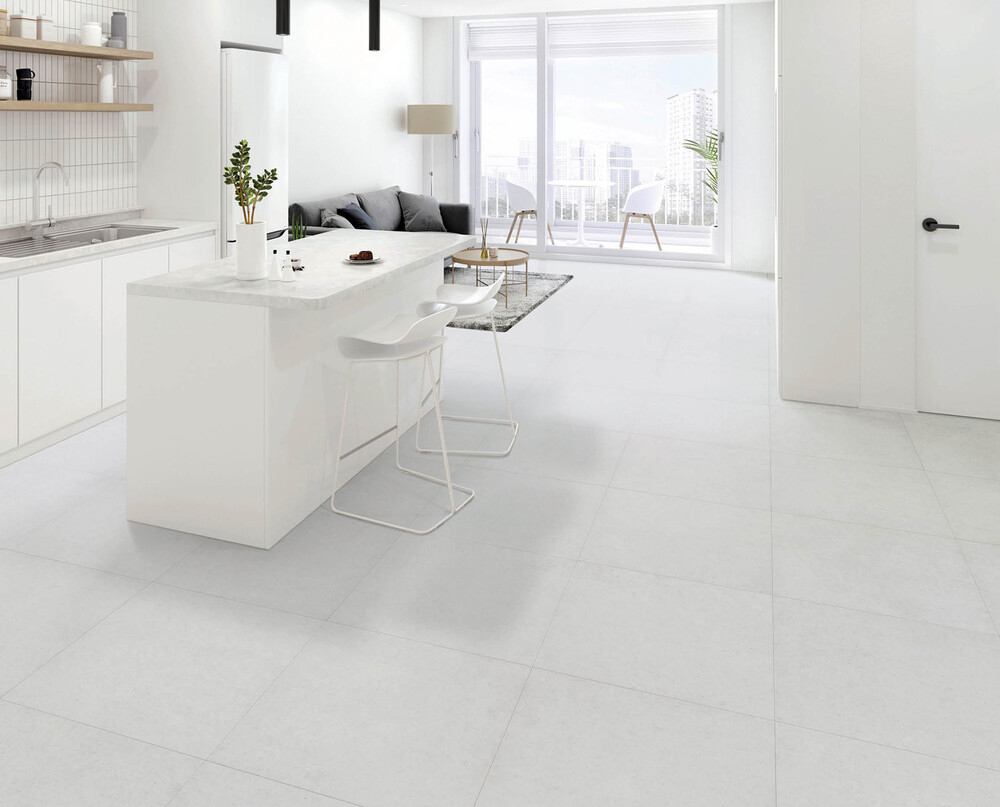 은은하고 자연스러운 분위기의 포세린 타일 텍스처를 베이스로 모던하면서 미니멀한 공간을 만듭니다.