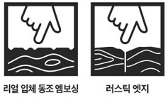 더 리얼하게, 이전에 없던 리얼 입체 동조 엠보싱과 러스틱 엣지