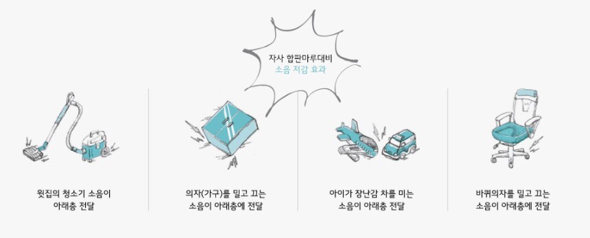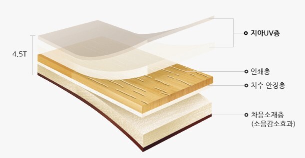 LX Z:IN 지아소리잠은 두께 4.5/6.0 mm로 두꺼운 바닥재입니다. 스포츠 시설에 사용되는 고기능 탄성 기술을 접목해 쿠션감이 뛰어납니다. 의자 끄는 소리, 진공청소기 소리 등 합판마루(자사)대비 경량 소음을 줄여주고, 보행 중 무릎 충격도 감소해줍니다.